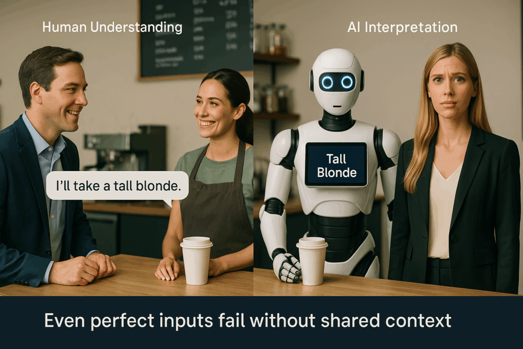 Take another example: A coffee order. “I’ll take a tall blonde.” Humans know it’s a roast. A context-less AI might present a tall blonde woman. This isn’t just humorous. It’s expensive.