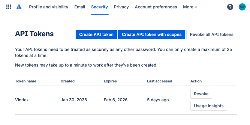 You will need to provide this token to Auxiliary Digital so Vindex can add Comments to the Scored Jira Tickets