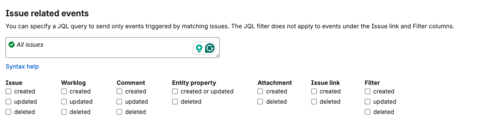 Under Issue “Created” and “Updated”. This will send all issues to Vindex for scoring.